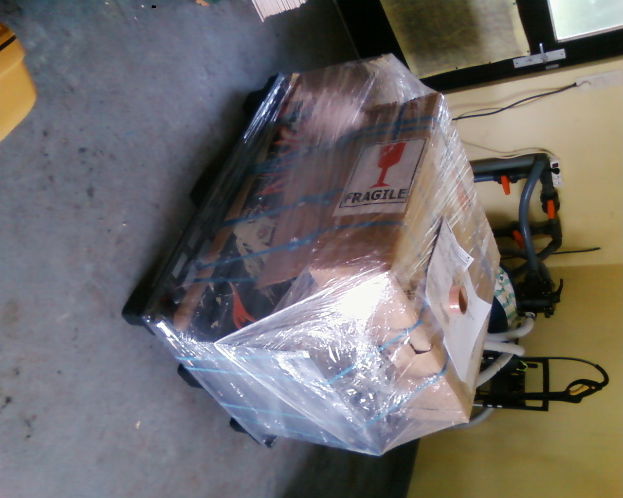 This arrived in time, and today we've wrapped the game onto the pallet. A lot of cardboard, about a mile of plastic straps, and finally coccooned the game in plastic wrap. Took us about 2 hours. Now it's ready for transport, byebye Spooky !